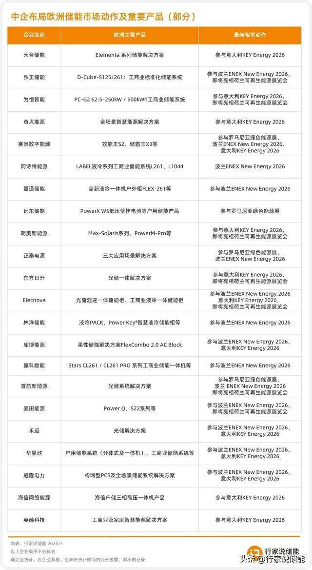 中国储能企业出海欧洲已成为必选项。新的一年,针对欧洲市场,它们将拿出怎样的产品策略?接下来,行家说储能将对这20家企业的产品布局进行重点梳理,揭开它们的“欧洲的产品及市场攻略”。